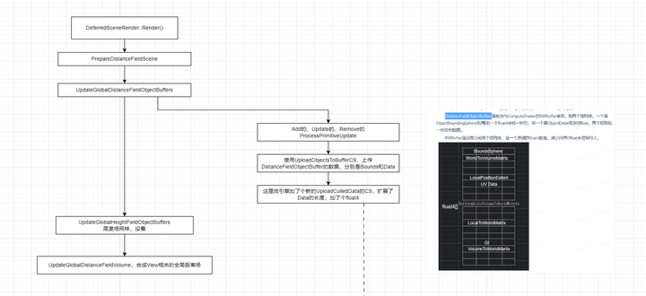 DistanceField数据上传 这一步上传所有SceneProxy的相关距离场数据,一堆float4的数据。 每帧有Remove,Update,Add的处理。