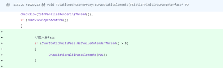 加入MultiPass 负责StaticMesh渲染的大多在StaticMeshRender里,FStaticMeshSceneProxy在渲染线程里的操作。